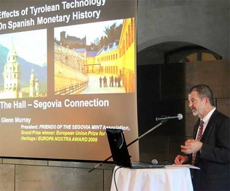 El numismático segoviano-californiano, Glenn Murray, ha sido “fichado” por la ceca de Hall (Tirol, Austria) como parte del equipo de expertos en la candidatura de la ciudad tirolesa como Patrimonio de la Humanidad. La candidatura, presentada oficialmente ante la Unesco el pasado 30 de enero, se basa en el carácter singular de la ceca, y en menor medida, en el casco antiguo de la población tirolesa. Precisamente ha correspondido a Murray argumentar sobre la relevancia de la casa de la moneda autríaca, una de las primeras en experimentar con la tecnología de acuñación a rodillo y la primera ciudad donde se estableció esta modalidad industrial de manera permanente.