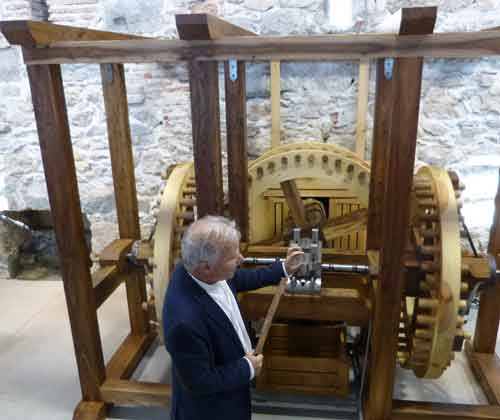 Cabe pues hablar de un cierre de itinerario “parcial”. El laminador, que se instaló en julio y tuvo un coste de 61.952€ íntegramente aportados por la Fundación, se suma a las tres piezas ya instaladas e igualmente fruto de la apuesta por Segovia de la Juanelo Turriano (actualmente hay una rueda que mueve el fuelle de la forja, otra para la fresador, y la mayor, para un martinete). En realidad, y como explicó la propia De Santos, la parte “experencial” del museo, la que recrea cómo funcionaba la Ceca en sus inicios, comportaría la instalación de una rueda hidráulica para el laminador (rueda de de 3,7 m de diámetro, que duplica a la más grande actualmente habilitada y en cuya ausencia se ha instalado un motor eléctrico), un segundo laminador o un acuñador (la opción está en estudio, la maquinaria es prácticamente idéntica), así como su pertinente rueda. A lo que habría que añadir un horno de recalentado, en el exterior.