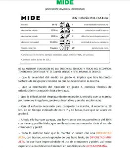 Art. 10º.- La DIFICULTAD de la marcha es “ALTA”, con algunos tramos de “DIFICULTAD MUY ALTA” en el caso de que haya hielo, lo que como debe conocer cualquier montañero, si ya el alpinismo en sí mismo implica un riesgo inherente, este grado de dificultad dependiendo de las condiciones del terreno y la climatología, lo multiplica, por lo que sólo deben de participar montañeros experimentados debiendo ir