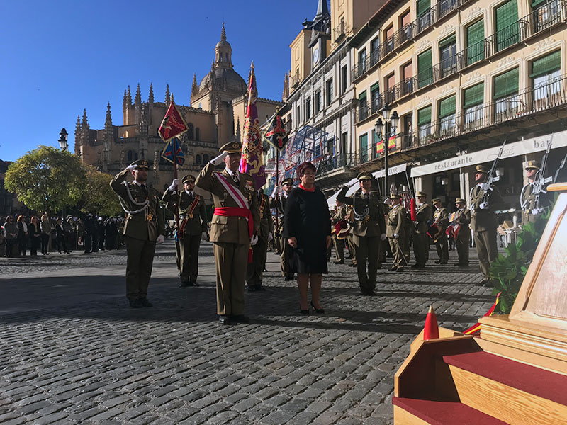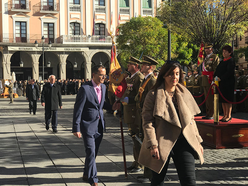 En el acto volvieron a ponerse de manifiesto los vínculos que unen a la ciudad y al Arma de Artillería, que en estos días celebra la fiesta de su patrona y que ha llevado, entre otras “tradiciones” a la puesta de la bandera de la promoción alrededor de la figura del Acueducto, donde accedieron la madrugada de este 4 de diciembre alumnos de la Academia con ayuda de los bomberos de Segovia. También han colocado banderas en otros puntos de la ciudad usando balcones y estatuas.