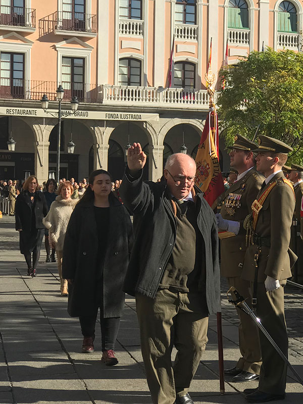 El saludo equivocado. Un hombre llamó la atención durante el acto de jura cuando, tras saludar a la bandera, alzó el brazo con el saludo fascista.