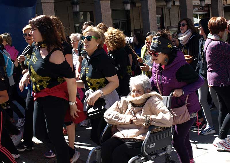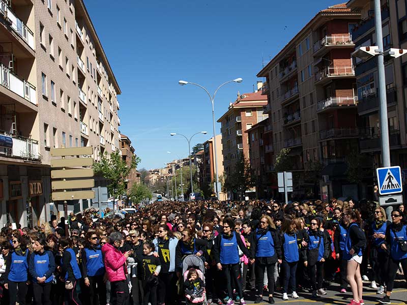 La larga riada de mujeres, esta vez vestidas con una camiseta negra como elemento distintivo, partió con rigurosa puntualidad, a las 11.00 horas, de la Plaza Mayor en dirección a la ronda de Juan II y el arco del Socorro. Fuera del casco antiguo, la riada ocupó todo el lado derecho de Ezequiel González, donde se produjo un "reagrupamiento" forzado por la organización de la salida de autobuses de la estación, para continuar después hasta la puerta de Madrid y volver a descender hacia Fernández Ladreda.
