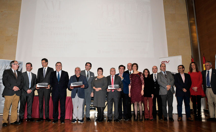 Inmediatamente después Juan Antonio Sancho (acompañado por su esposa Aurora Oviedo, y sus hijos Ana y Jorge Sancho), propietario de TRANSALBERT recibieron de parte de Juan Andrés Saiz (presidente de Asetra), y de Miguel A. González (vicepresidente de Asetra), el Acueducto de Plata a la Empresa de Transportes del Año.
