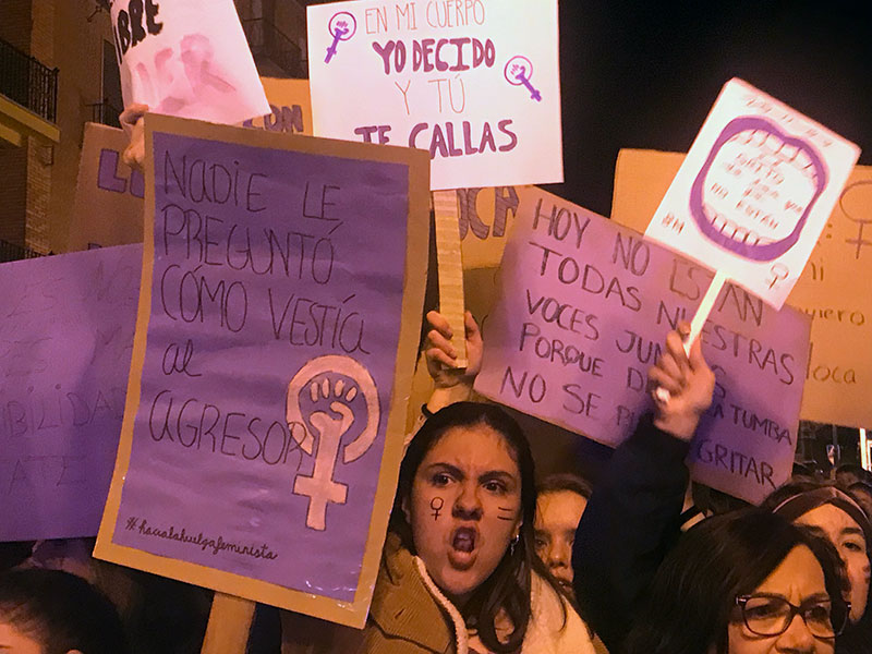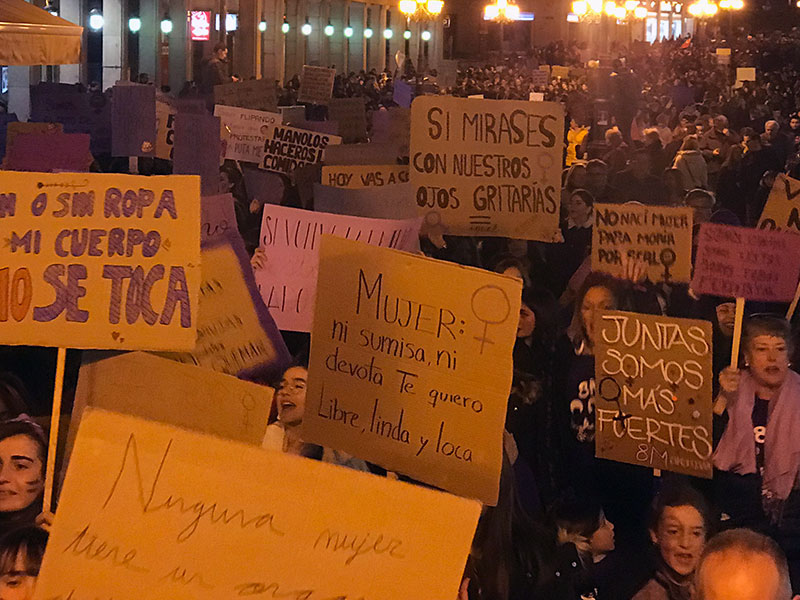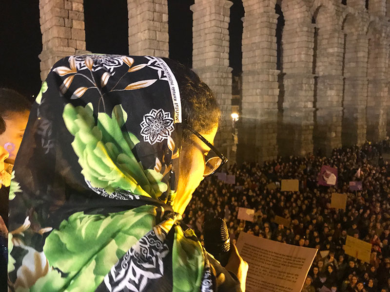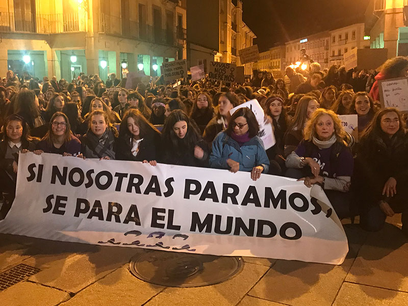 El manifiesto leído en el Azoguejo señaló con eficacia a la existencia de una sociedad desigualitaria en todos los campos, desde la calle o los centros de trabajo a las cocinas de los hogares, los bares y las guarderías, pasando por “las discotecas y los medios de comunicación”.