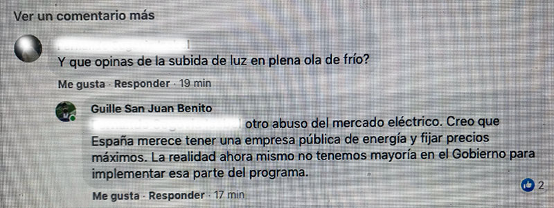 A ver, que están las redes muy activas y los políticos abiertos al ciudadano. Preguntaba uno al líder de Podemos, Guillermo San Juan, su opinión por la subida desmesurada del precio de la luz y el morado respondía que “no tenemos mayoría [en el gobierno de España] para implementar esa parte del programa”. Y eso teniendo ministros de su formación en todos los departamentos implicados en el asunto del suministro eléctrico. Pues nada, a esperar la mayoría suficiente.