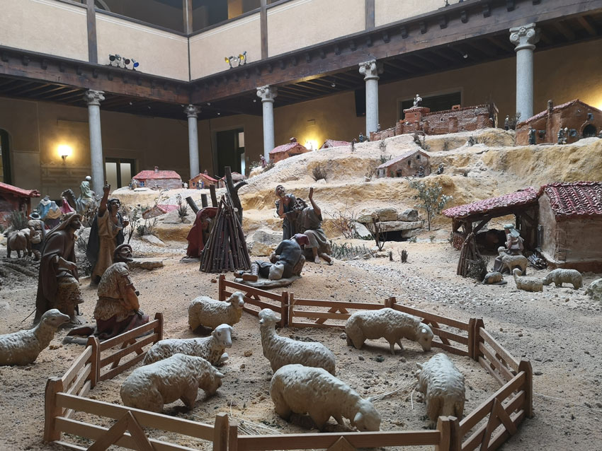 Pocos segovianos hay en la provincia que, al menos una vez en su vida, no hayan visto el Belén que cada año se instala en el Patio de Columnas del Palacio Provincial y que esta mañana era abierto al público hasta el próximo día 7 de enero. El de la Diputación es uno de los Belenes más visitados cada año en la provincia y sigue atrayendo, tanto a familias, como a grupos de alumnos de los centros educativos de Segovia. Durante cerca de quince días, seis funcionarios de la Diputación han trabajado para que la instalación, que combina edificaciones hechas a mano, como el castillo de Herodes −inspirado en el de Pedraza−, con elementos propios de la naturaleza, como arbolillos, piedras o arena, siga la misma línea que en Navidades anteriores, pero también con novedades. En esta ocasión, la recreación de una cascada que cae a ese río siempre imprescindible en los paisajes de pastores y lavanderas y el centenar de figuras que integran el nacimiento, fabricadas en Cataluña y procedentes del antiguo hospicio (hoy IE university).