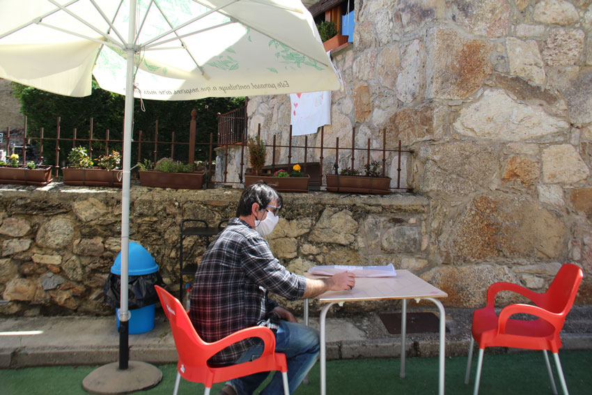 El que firma, en un bar de Navafría tras 64 días.
