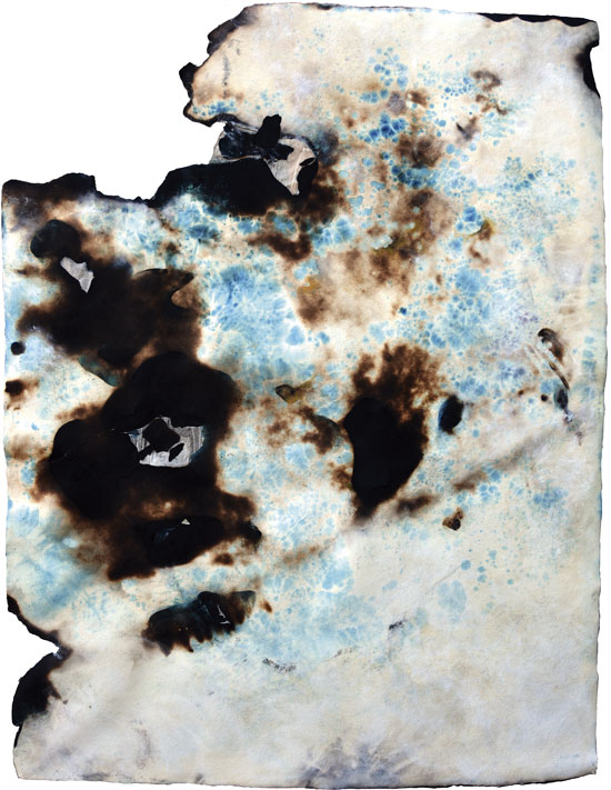 “Yo me siento muy bien pintando con el fuego; es mi compañero de trabajo, y aún mejor cuando consigo amansarlo y dominarlo a través de los trazos y las atmósferas de color”, asegura Christian Hugo, para quien la naturaleza es espacio y, al mismo tiempo, herramienta de trabajo. No en vano, el artista reconoce haber aprovechado la luz, las sombras de las ramas o las cortezas de los árboles para ir construyendo sobre el mismo terreno -y mientras trabajaba también con la fotografía y el vídeo- muchos de los lienzos y montajes que forman ‘Al color del fuego’.