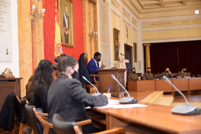 A pesar de la pandemia, el salón de Actos de la Academia de Artillería acogía el pasado 12 de abril el tradicional debate entre  alumnos de IE University y los alféreces alumnos de la Academia de Artillería. El reto dialéctico se entabla en inglés y este año versaba sobre la conveniencia de que la UE cree una fuerza militar conjunta, lo que aparejó una interesante y animada disputa. Los universitarios de IE University tuvieron que argumentar a favor, mientras que los cadetes de la Academia de Artillería se emplearon en defender la tesis contraria.