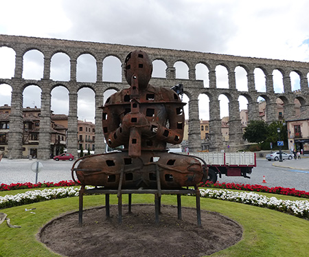 Explicó Clara Luquero que la escultura era formidable, que con ocasión de su ubicación en la plaza Oriental, con motivo del Hay Festival, había recibido muchos comentarios alabándola. Claro que, según para qué, muchos en terminología alcaldesa pueden ser dos, pongamos tres. Imaginó —la alcaldesa— la visión-fuerza presidiendo la entrada en la ciudad. Embelesada. En fin, han pasado ya algunos días desde que publicamos la noticia y la verdad que la estatua sigue concitando comentarios, los más adversos. Que sí qué birría, que si la ha hecho Plácido. Qué si bonita manera de tirar el dinero. Típico. Como no menos típico el comentario del moderno que tilda de paletos y retardados apenas entendidos en cerdos a los segovianos disconformes.