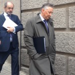 Los cinco acusados a título lucrativo están dispensados de asistir a esta sesión, por lo que ya solo falta Manuel Escribano, el que fuera director de Caja Segovia y según las acusaciones el que más se ha lucrado con el tema de las jubilaciones y prejubilaciones y el que se enfrenta a las penas más severas. Escribano también afronta el pasillo solo, sin abogado, pero llegando a la calle San Agustín desde la cuesta de San Juan. Él si va a dar declaraciones. “Creo en la justicia. Yo no he hecho nada ilegal en mi vida. Han sido siete años sufriendo declaraciones desafortunadas de personas malinformadas. No tengo dudas de que este asunto se va a aclarar, no he cometido ninguna ilegalidad, como ya ha dicho la fiscalía”, dice, recordando que el fiscal presidente, Antonio Silva, continúa pidiendo el sobreseimiento. Es la “doctrina Botín”, último cartucho de las defensas para evitar que el juicio siga adelante.