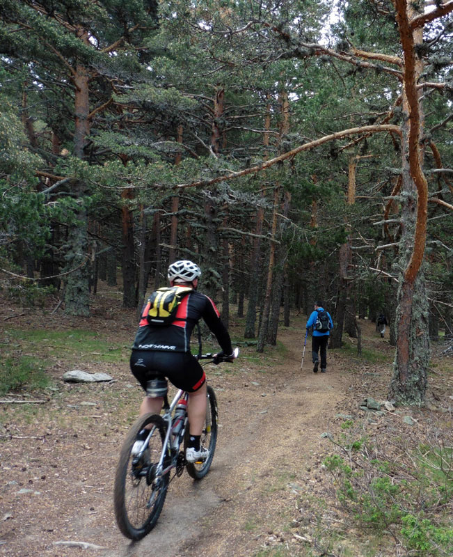 De todo este amplio repertorio de «usuarios» de la sierra que acabo de hacer, dos son los que acaparan el grueso de la polémica por su capacidad de penetración masiva en el territorio: ciclistas y corredores de montaña. El ciclismo de montaña practicado de forma irresponsable, circulando campo a través o por apartados senderos, está afectando muy negativamente al entorno de la sierra de Guadarrama, en especial el llamado ciclismo «extremo», practicado de forma marginal pero muy visible en algunos lugares, y que es hoy el heredero directo de aquel motocross cerril de los años setenta del siglo pasado que todavía no ha sido completamente erradicado en algunas zonas de la sierra. No ignoro que son mayoría los usuarios de la bicicleta de montaña que disfrutan de su afición de forma civilizada y respetuosa, pero ello no puede ocultar la realidad de que la práctica incontrolada de este deporte de masas supone hoy una de las principales amenazas para la conservación de un espacio natural tan frágil como es la sierra de Guadarrama en su conjunto. Se están celebrando pruebas de gran impacto ambiental que no deberían ser autorizadas por la dirección del Parque Regional de la Cuenca Alta del Manzanares, y voy a poner el ejemplo de la III MTB de Soto del Real, que tuvo lugar hace apenas unos días.