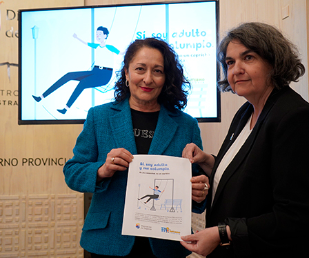 La diputada de Asistencia a Municipios e Igualdad, Pilar Martín y la presidenta de Autismo Segovia, Susana Guri han presentado esta mañana la iniciativa ‘Sí, soy adulto y me columpio’, impulsada por la asociación y apoyada desde la institución provincia; con el fin de sensibilizar a toda la población de la provincia y también a los ayuntamientos, de manera que se normalice en uso de columpios en parques infantiles por parte de las personas con Autismo, tengan la edad que tengan.