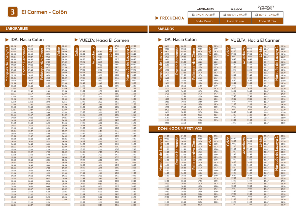 En los horarios de autobuses de la línea 4, figuran los de la línea 2.