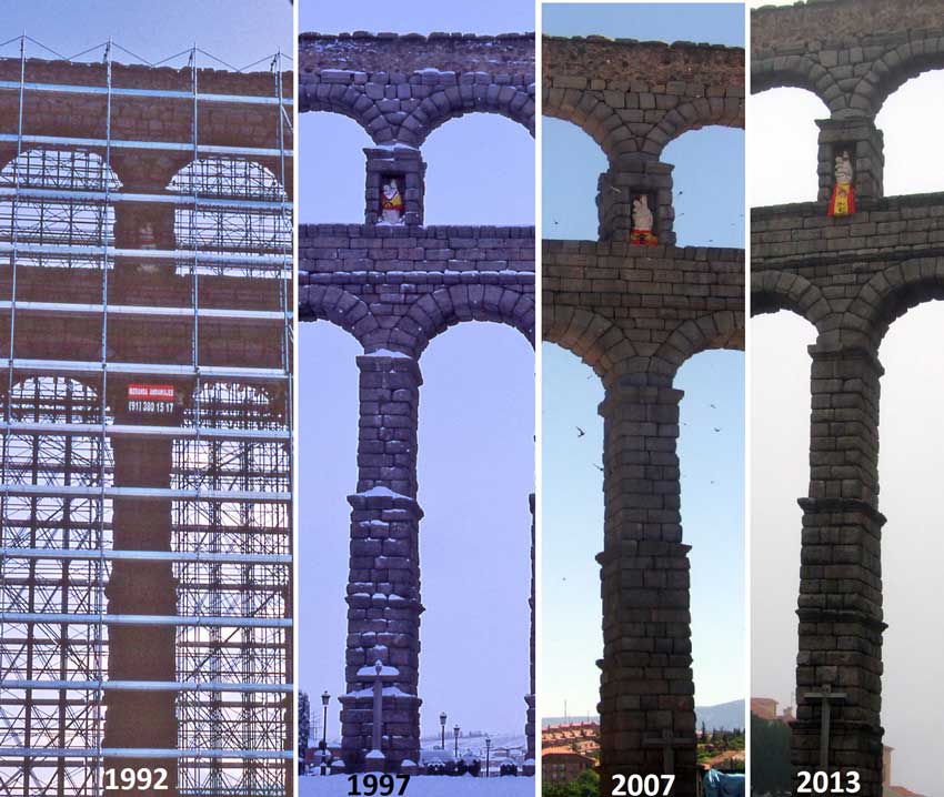 Distorsión visual son aquellas farolas que, siendo Luquero concejala de cultura, erizaron Padre Claret de manera que para ver el acueducto se jugaba uno un esguince. Y ella bien calladita, no le fuera a reñir el jefe. Distorsión visual son los escenarios que se montan día sí y día también y las banderolas de propaganda de estos luqueriles eventos a 20.000€ la gracia. O llevar diez años pendientes de un plan de gestión del principal monumento de la ciudad mientras en las junturas de granito florecen jaramagos y margaritas.