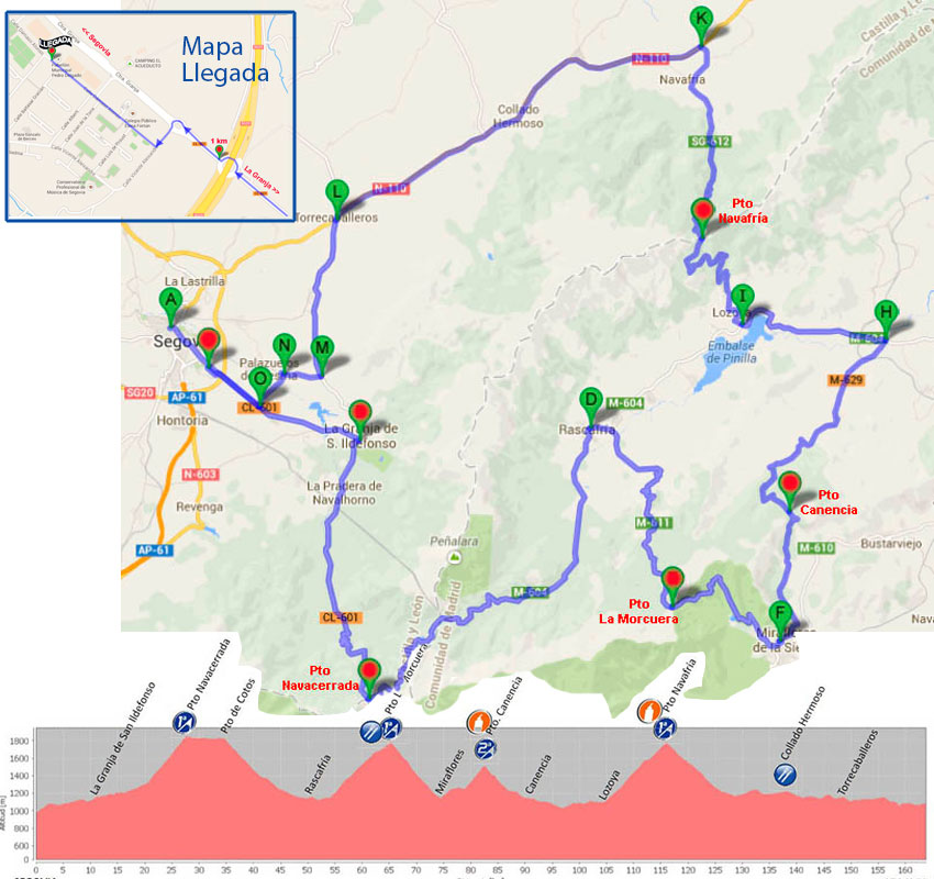 Como es habitual, la prueba arrancará en la Plaza de Artillería a las 8:00 horas. Por delante 164 km y cuatro puertos de montaña (Navacerrada, La Morcuera, Canencia y Navafría). La XXV Marcha Cicloturista finalizará, como en ediciones anteriores, junto al pabellón Pedro Delgado (calle Dámaso Alonso-Nueva Segovia), zona en la que se entregarán los premios a los ganadores hacia las 15:30 horas. Asimismo, y en el pabellón, los participantes podrán retirar los dorsales desde las 12h del sábado 18 de agosto hasta las 21:30, y el domingo una hora antes de la salida (7:00).