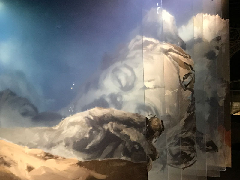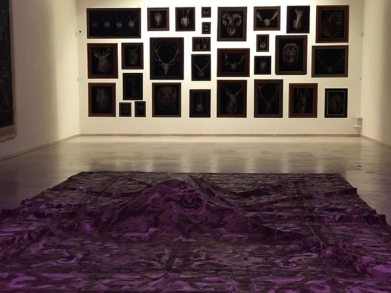 Buena prueba es esa especie de altar barroco vegetal elegido para la presentación de la muestra, uno de los cuatro espacios temáticos ideados para la muestra. Que es la primera que el autor, habitualmente enfocado al trabajo en arte urbano, ofrece en un museo.