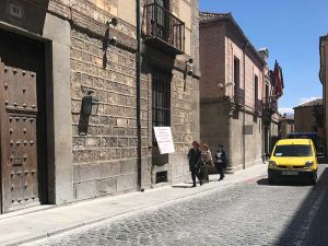 Un cartel pide justicia para Caja Segovia desde hace años ante la audiencia.