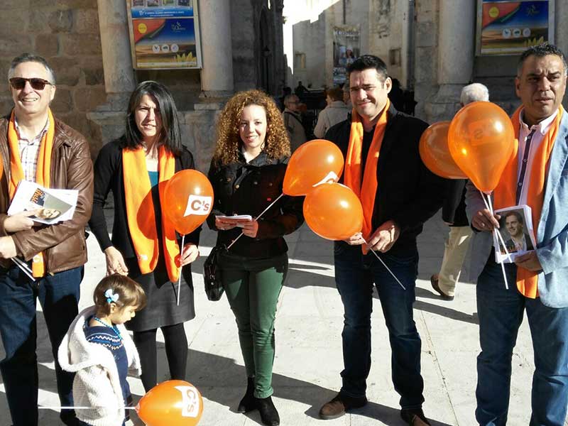 La candidatura de Ciudadanos ha estado este domingo, pro primera vez, en diferentes pueblos de la provincia haciendo campaña y manteniendo la imagen “tipo” de un grupo armado con globos dispuesto a contar su mensaje a quien lo quiera escuchar, desechando formatos como el de la reunión programada. Los candidatos de la formación naranja, Javier Rodríguez y Juan Luis López, afirmaron estar celebrando la Constitución, para la que proponen en su programa el cierre del Estado autonómico, zanjar la posibilidad de nuevas cesiones de competencias.