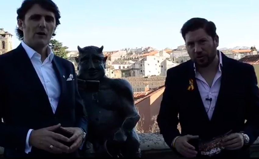 Que sabido es que la estatua al maligno de la Cuesta de San Juan lleva a mal traer a Nazario Merino, que la apoda “Claudio el fauno”. Pues bien, Fernández&Jiménez protagonizaban al respecto un corto vídeo en el que, posando junto al sátiro, dejan claro que también aplicarán el 155 al Satanás segoviano (que tanto gusta a los turistas, por cierto) al tiempo que se hacen cruces de la existencia de una cámara de seguridad para velar por la integridad del “engendro diabólico”, y para el Acueducto, nada de nada. Vale la pena ojear el vídeo, no precisamente por su factura técnica ni, mucho menos, por la calidad interpretativa del dúo; esperemos que a Fernández-Roca se le dé mejor el paracaidismo. En cualquier caso, bien jugado. Punto para Vox.