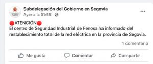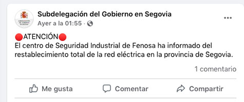 Eso, cruzar los dedos, debió ser lo que hicieron los segovianos al final del 25 de diciembre, cuando una avería en el sistema eléctrico dejó a oscuras la ciudad y las localidades del alfoz. Había muchos que se agarraban a las premoniciones esas de “el gran apagón” que está por venir pero lo primero que hicieron fue lanzarse a exprimir las baterías de sus dispositivos móviles para comentar en las redes sociales la oscuridad, algunos temores y varios chascarrillos. La Subdelegación del Gobierno y el Ayuntamiento también usaron sus perfiles en las redes para aportar información somera del corte y la reposición de luz. Esta vez las entradas no son motivo de queja de los concejales de Cs que dicen que el perfil municipal se usa con fines partidistas y publicitarios desde el Gobierno municipal. Ahí le dejo el enlace de Facebook municipal y ya, usted opina.