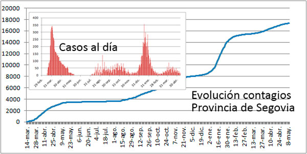 Por lo demás el parte de evolución del covid refiere la muerte de una persona de 49 años en el hospital de Segovia, la tercera en lo que va de mes, la 367 en el hospital y la número 974 en la provincia desde marzo. Es también un caso atípico por la edad del fallecido; el 99% de las defunciones se han registrado en la franja de edad de más de 50 años, constando 12 por debajo de esa edad.