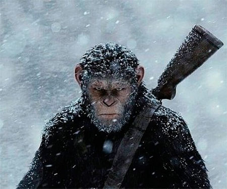 Les pongo en situación. En 2011 Ruppert Wyat inició una nueva trilogía sobre el universo simio. La idea era explicar cómo los simios se apoderan del planeta y sustituyen a los hombres como especie dominante. Fantasía racionalista muy del gusto de este opinador. Ya entonces la cosa me pareció brillante aunque algo ñoña, pero bien resuelta desde el punto de vista del guión. Experimentos contra el Alzheimer que, probados en chimpancés, generan una nueva raza de supersimios en tanto por un efecto colateral, la vacuna deviene epidemia apocalíptica. En la continuación, Matt Reeves nos sitúa en una vía intermedia donde supersimios y hombre venidos a menos, muy menguados numéricamente, más o menos se las apañan, hasta que estalla la guerra.