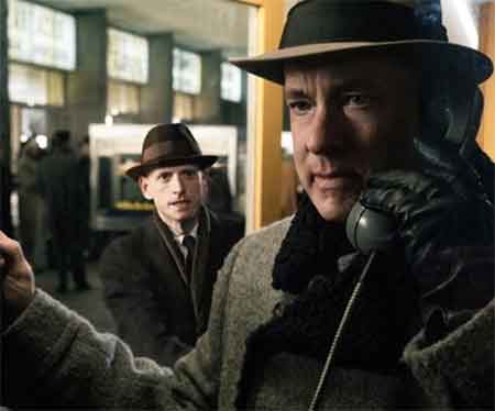 Pero la película pasa olímpicamente de eso (algo menos del incidente del U2), para centrarnos en el intermediario, un solvente Tom Hanks, abogado de seguros, que sin quererlo ni beberlo se ve inmerso en una negociación críptica entre dos potencias que se ignoran y que no pueden hablar abiertamente de sus tapujos. Casi todo queda en manos del negociador, que tiene que emplear su pico de oro para convencer a tipos retorcidos y desconfíados para quienes lo mejor sería fusilar sin contemplaciones a los espías capturados. Y a otra cosa.
