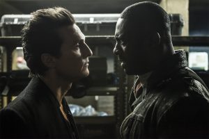 Hay que advertir que la película de Nikolaj Arcel se basa en las 4.250 páginas de la saga de King. Tomos y más tomos embuchados en 95 escuetos minutos que han tenido una tormentosa adaptación al cine, con 10 años de guiones mandados a la papelera y montajes en el último minuto. Así pasa que la pintoresca sociedad del Mundo Medio de la saga, una suerte de feudalismo tolkeniano en pleno oeste americano, queda poco menos que esbozada, al igual que algunos de los principales items de la novela, los videntes, el Rey Carmesí, los vampiros, y tantos y tantos elementos primordiales que a la postre son los que mantienen en pie la original cosmogonía narrativa. La película, pues, se apuntala en la mera relación entre el pistolero Roland, Idris Eba, y el adolescente Tom Taylor. Matthew McConaughey se desempeña como malo poco convincente. Al reducir de un centenar a solo tres las patas de este taburete todo resulta básicamente predecible y sin tensión. Serie B pura y dura, que tal vez hubiera sido mejor desarrollar en una serie a lo Juego de Tronos.