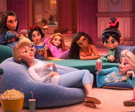 Como siempre, Disney plantea como motor narrativo algún problema personal, el egoísmo y las carencias afectivas en este caso, al que el héroe planta cara, generalmente en oposición a un villano y a través de la oportuna odisea. Pero esto es lo de menos, lo mejor es dos cosas. Por un lado la cantidad de metaficción que el director y guionista Phil Johnston, junto con Pamela Ribon, han metido en la entrega. Y es que por la saga circula el Parnaso de los héroes millenials de la casa, desde Marvel a la Guerra de las Galaxias, desde Pocahontas a Frozen. De hecho, vale la pena detenerse en una memorable escena en la que un grupo de princesas Disney explican a Vanellope como ser “princesa de Disney”, y porqué toda “princesa Disney” se encuentra a si misma en una canción. Tronchante, ajustado, lúcido… se me acaban los adjetivos, probablemente, una de las mejores escenas de los dibujos animados de todos los tiempos.