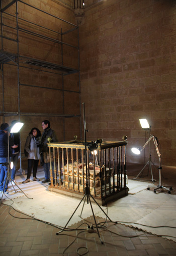 Las tres piezas se ubicaban hasta hace unos meses en la capilla de Santa Catalina, que hacía las veces de museo y “cajón de sastre” hasta la conversión del Bajo Claustro en un espacio propiamente habilitado para la pinacoteca. La idea, como señalaba García Rivilla, y como viene haciendo la sede desde hace 30 años, es ir recuperando toda esa imaginería cristiana –Bliblia pauperum, inicialmente concebida para adoctrinar a un pueblo iletrado- cargada además de valor artístico. Y hacerlo desde un planteamiento museístico moderno. De ahí que Santa Catalina, otros 145.000€ mediante, esté ahora en obras. Se han saneado cubiertas y paredes, muy castigadas por la humedad. El espacio estará ahora más de un mes secándose. La idea es decorarlo posteriormente con orfebrería y tapices dando protagonismo a la “estrella” del conjunto, la tumba del Infante don Pedro, el hijo de Enrique II que según la leyenda se precipitó Alcázar abajo en 1366.