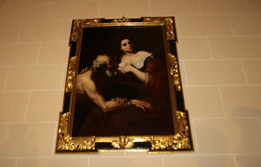 La tercera pieza es todo un clásico de la pintura barroca, una Caridad Romana que, como las anteriores, pasaba sin pena ni gloria en su anterior ubicación en Santa Catalina. Es un tropos recurrente en la pintura de la época (Caravaggio, Rubens, Murillo). La leyenda referida por Valerio Máximo habla del viejo Cenón, condenado a morir por inanición. Cada noche, su hija Pero le visitaba y le daba de beber de sus propios pechos. Tras conocer la historia el césar se conmovió y perdonó al famélico padre. En el XVII era un paradigma de la “caritas”, una de las tres virtudes teologales junto a la Fe y la Esperanza.