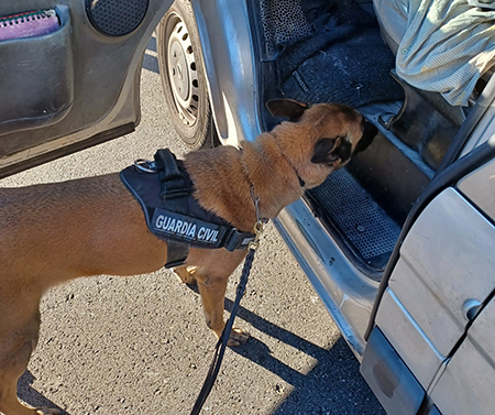Se solicitó la presencia del guía canino. Una vez en el lugar, el perro Seven marcó cerca del asiento delantero, y ante la negativa de los ocupantes de prestar colaboración, se procedió a desmontarlo. Tras la inspección, se descubrió una caleta en el interior del asiento, donde se ocultaban ocho bolsas de cocaína y un paquete de marihuana, que arrojaron un peso total de 24 gramos de cada una de estas drogas. Los dos hombres fueron detenidos y posteriormente puestos a disposición judicial.