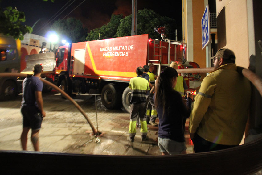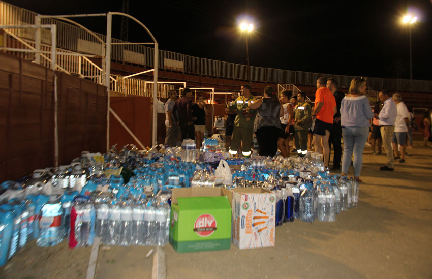 Medianoche en el Real Sitio de San Ildefonso, cientos de curiosos y voluntarios se congregan alrededor de la plaza de toros, donde el ayuntamiento ha centralizado la recepción de agua, leche y bocadillos aportados por voluntarios de todo el alfoz. De El Espinar llega un remolque cargado de agua y leche, hay gente de Palazuelos y en el Paseo de Santa Isabel, vecinos de todas las edades ayudan a conectar las mangueras que rellenan los depósitos de las autobombas en tanto la Guardia Civil trata de mantener despejado el acceso a Caserío de Urgel. Todos con un ojo puesto en el resplandor rojizo que domina el horizonte.