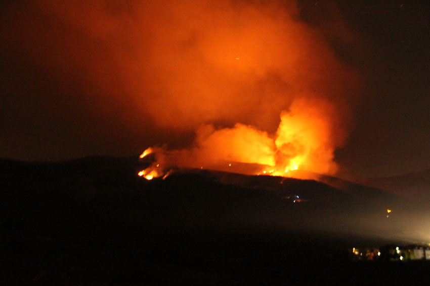 Zona devastada. El fuego se extiende a un lado y otro de la cresta.