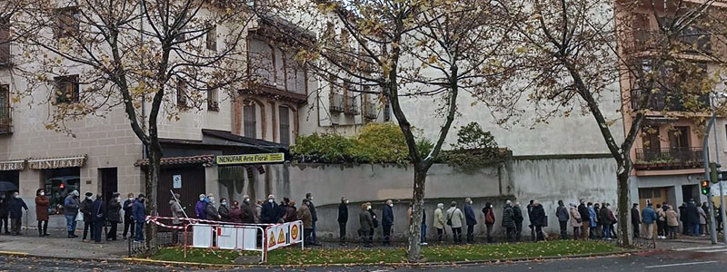 La decisión de convertir el centro COVID de Padre Claret en centro único de vacunación está generando largas colas de ciudadanos ante las puertas del centro y soportando las bajas temperaturas y la lluvia. El centro parece de espacio y salas de espera para los usuarios que cada día forman largas filas y que en la mañana de este 22 de noviembre, con dos grados de temperatura y momentos puntuales de lluvia, han llegado a dar la vuelta a los edificios para ocupar buena parte de la calle Cañuelos, paralela a Claret.