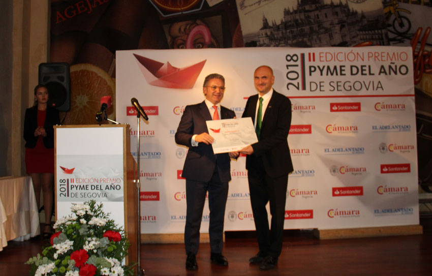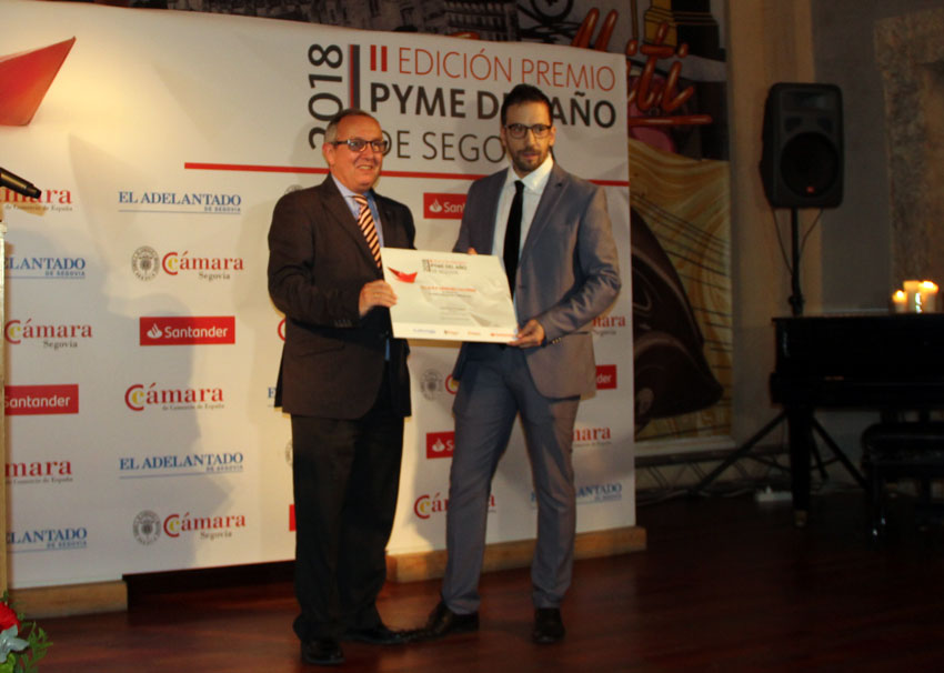 La entrega de esta segunda edición de los Premios Pyme, patrocinados por el Banco de Santander, congregaron en el Convento de Mínimos de la capital segoviana al núcleo duro de la clase empresarial provincial, así como a los familiares de los premiados. Como Pyme Exportadora ganó Jamones Segovia, que ya no debe tener pared para colgar los galardones en este aspecto (en 2017 fue premiada como empresa del año por la FES), después de que en 1991 iniciara su apertura al comercio exterior con la rocambolesca -y exitosa- operación de rescate de la raza porcina magiar en declive, el mangalyca.