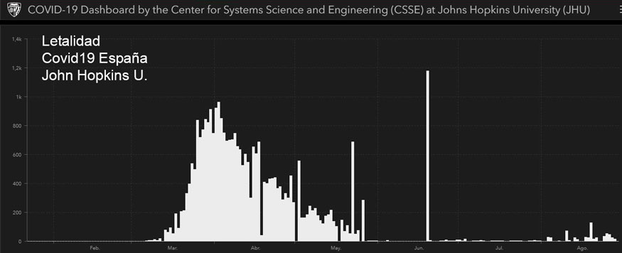 España es ahora mismo el país europeo con peor curva de propagación del covid19. Por aquello del consuelo de tontos (muy tontos), cabe decir que a nivel mundial la principal preocupación está en América e India, con datos estremecedores que dejan en bagatela los españoles. Pero el hecho cierto es que otra vez somos los que vamos peor del entorno. La curva de contagios es relativamente significativa, a más PCR más contagios. Pero la que no engaña, la preocupante, es la de muertos; a golpe de ojo se ve que tras un “plácido” julio, mes en el que tal vez algunos tuvimos la sensación dejar atrás la crisis, vemos que en agosto vamos a peor. Ciertamente, y si comparamos con marzo, es una curva “contenida”, una curva que no acaba de explotar (crucemos los dedos), pero ese insidioso goteo mortal nos dice: estamos bien lejos de olvidarnos de la mascarilla. Pero que bien lejos. Y a la vuelta de la esquina tenemos la vuelta al cole, al tajo, al metro a los desplazamientos en Avanza…