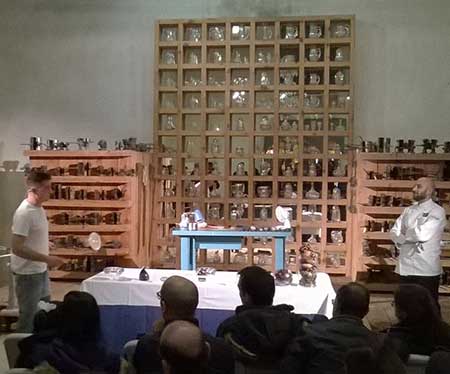 La Real Fábrica de Cristales, en colaboración con Rubén Arnanz, han elaborado de forma conjunta un plato de cristal que servirá para que el chef segoviano, que recientemente ha renovado para su establecimiento, El Villena, la estrella Michelín, presente sus elaboraciones de nouvelle cusine. Con una cuidada puesta en escena, Ruben Arnanz y el maestro vidriero Diego Rodríguez protagonizaron este original ensamblaje entre cristalería y cocina.