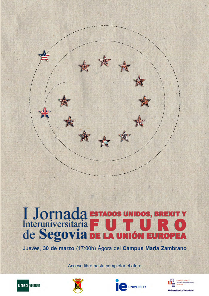 Por primera vez, las cuatro instituciones con rango universitario en Segovia -Academia de Artillería, Uned, IE University y UVa- unen esfuerzos para organizar una jornada conjunta que promete. Será la I Jornada Interuniversitaria de Segovia, el 30 de marzo, a las 17 horas en el campus María Zambrano. Y el tema elegido es “Estados Unidos, Brexit y futuro de la Unión Europea”.