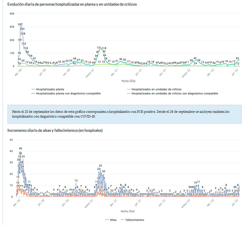 La actualización de casos covid en la provincia de Segovia, que en lo tocante estadística de infectados solo recoge a los mayores de 60 años, marca una caída en el número de nuevos contagios pero hay que lamentar cuatro nuevas muertes en el hospital de Segovia. El complejo hospitalario registró en la primera semana de julio un notable incremento de hospitalizados por covid, con 45 ingresados y dos en la UCI. Un dato que sitúa la tasa de ocupación por covid del hospital segoviana en un 13% de su capacidad total, parámetro que eleva a nivel “alto” la actual fase de la epidemia.