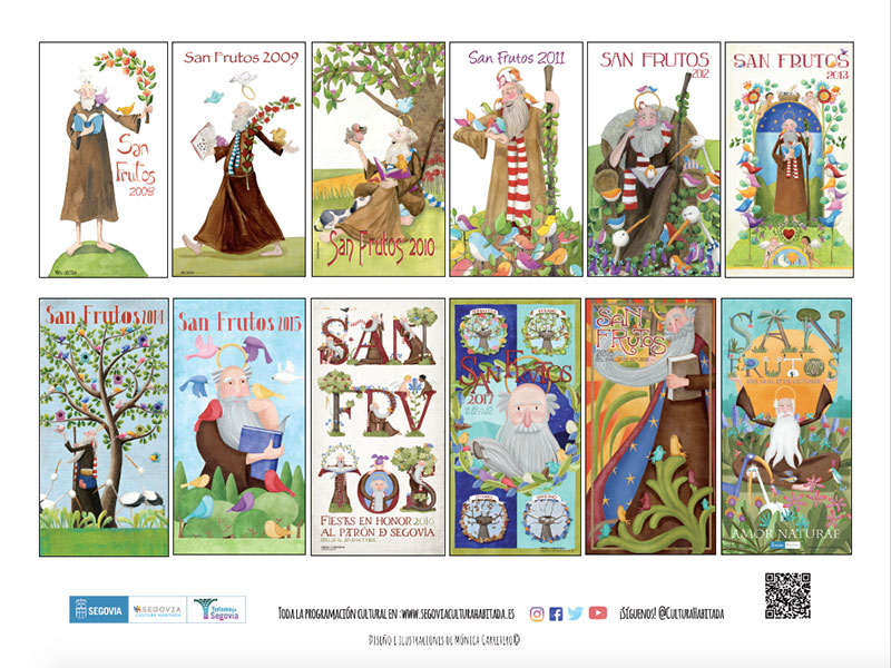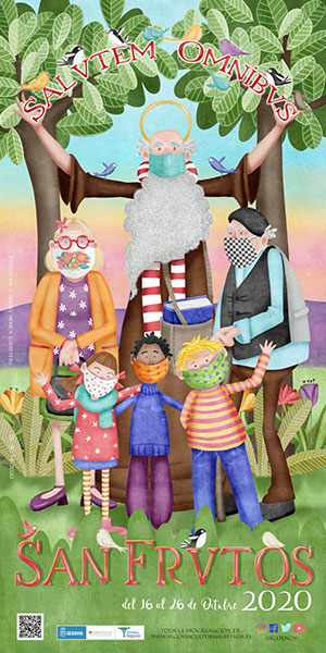 La ilustradora, Mónica Carretero, ha sido la encargada de realizar el cartel de la celebración del patrón en el que aparece San Frutos vistiendo mascarilla. Este es el décimo tercer año consecutivo que Carretero dibuja el cartel, motivo por el que se ha decidido elaborar un calendario con las doce ilustraciones de años anteriores en cada mes del año y con la de 2020 haciendo de tapa. Se han editado 3.000 ejemplares que se venderán en la propia sede de la aecc (plaza de Somorrostro) o en el Centro de Recepción de Visitantes (Azoguejo) al precio de 5 euros, a beneficio de la Asociación española contra el cáncer (aecc).