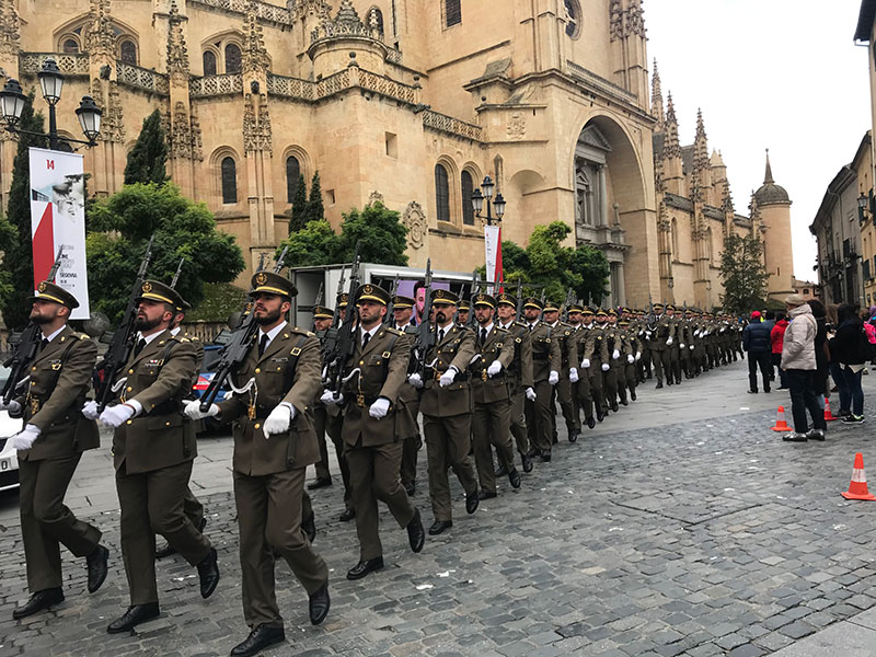 Por otra, el atril de la presidencia estuvo ocupado por el Teniente General Luis Manuel Martínez Meijide, recién llegado a su nuevo puesto al mando de la celebrada Unidad Militar de Emergencias (UME) y que presidía en Segovia su primer acto oficial desde ese cargo. El teniente General se declaró feliz de esta coincidencia ya que se formó en la Academia y ocupó destino en Segovia hace años, cuando tenía el empleo de capitán. Martínez Meijide declaró su ilusión por tomar el mando de una unidad “querida y respetada pese a su juventud” al frente de la cual y “de nuevo con las botas y uniforme de campaña” se propone “mantener el nivel de exigencia y excelencia” alcanzada por anteriores jefes de la prestigiosa Unidad.