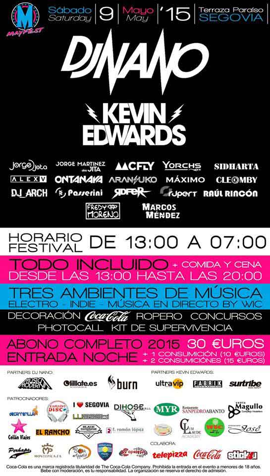 Los exámenes están a la vuelta de la esquina para los universitarios segovianos, pero antes, el 9 de mayo, una bocanada de oxígeno con el fiestón más esperado del año, el Mayfest, que en esta ocasión traerá a la Terraza Paradiso como plato fuerte a DJ Nano (a partir de las 00.00), acompañado de Kevin Edwards y hasta una veintena de artistas de Segovia y Madrid.