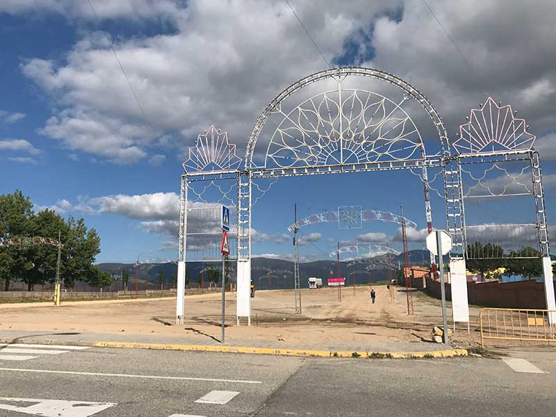 La inminencia de las Fiestas también se hace patente en los preparativos que ya se realizan sobre el recinto ferial, junto al estadio de la Albuera, donde ya se han montado los pórticos de entrada y se explana el terreno a la espera de los primeros feriantes cuyo número y atracciones también son un arcano a estas alturas del mes de junio