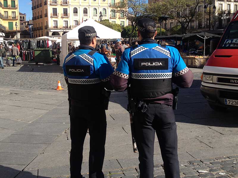 Dos policías locales vistiendo chalecos, en la plaza Mayor de Segovia.