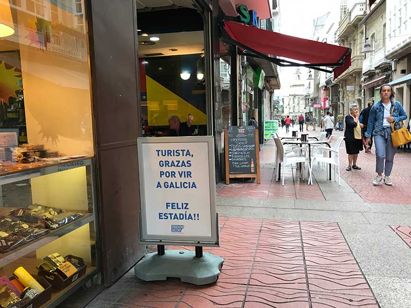 Un cartel de agradecimiento a los turistas en una calle de Galicia.
