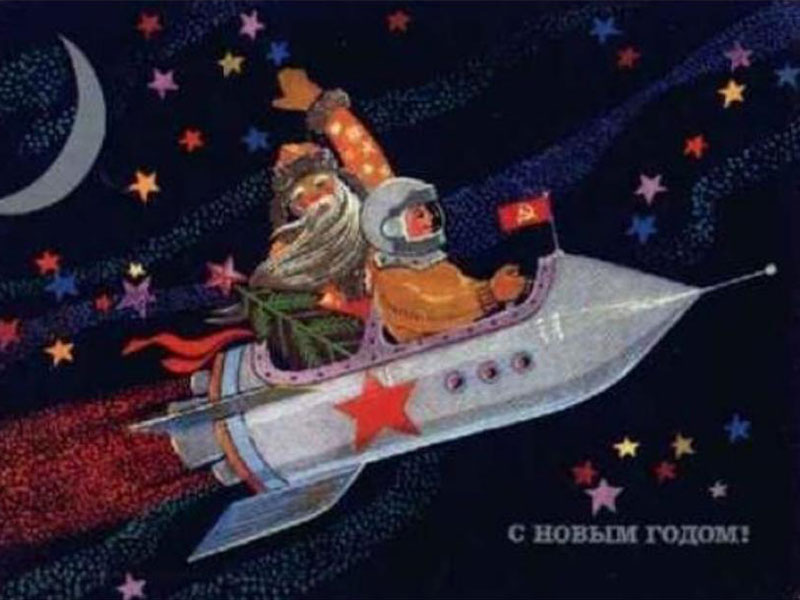 Cohete comunista llevándose el árbol de Navidad y Rey Mago no se sabe donde. ¿A Marte o a Raticulín?…… porque la luna está a su izquierda.