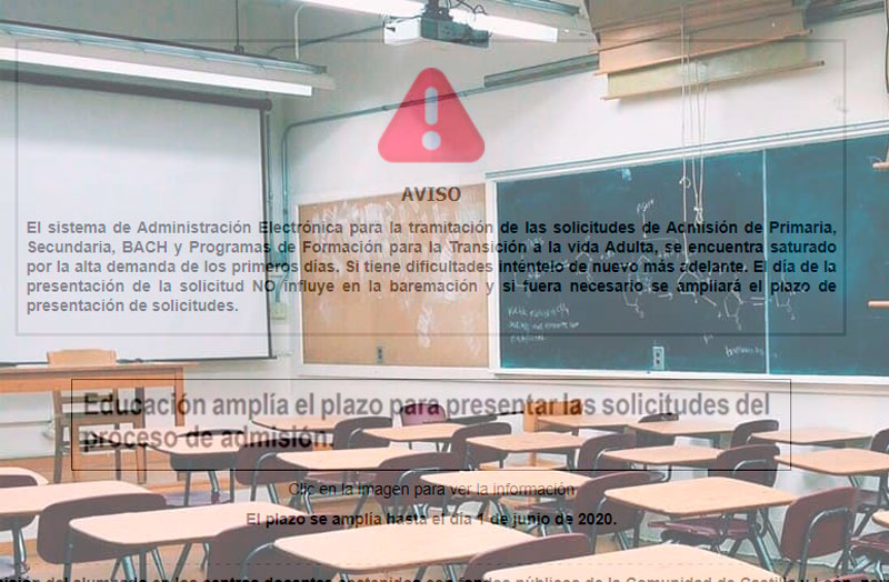 Los sistemas informáticos de las administraciones están siendo las bajas colaterales del covid19. Al canalizarse los trámites a la vía telemática la gran mayoría de trámites las plataformas informáticas colapsan. Es lo que ha pasado en Educación, la caída del sistema obliga a posponer del 26 de mayo al 1 de junio el plazo para la presentación de solicitudes de admisión en nuevos centros.