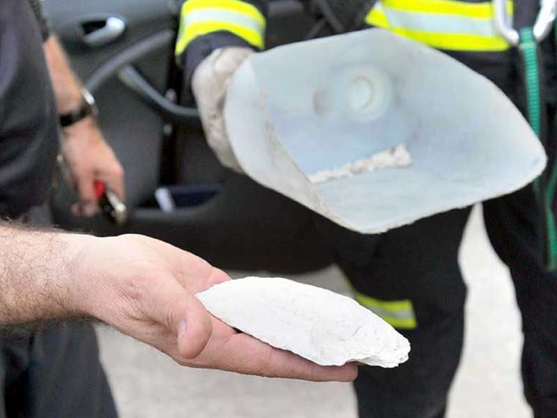 El fragmento desprendido de la estatua de la viren y otros trozos menores.